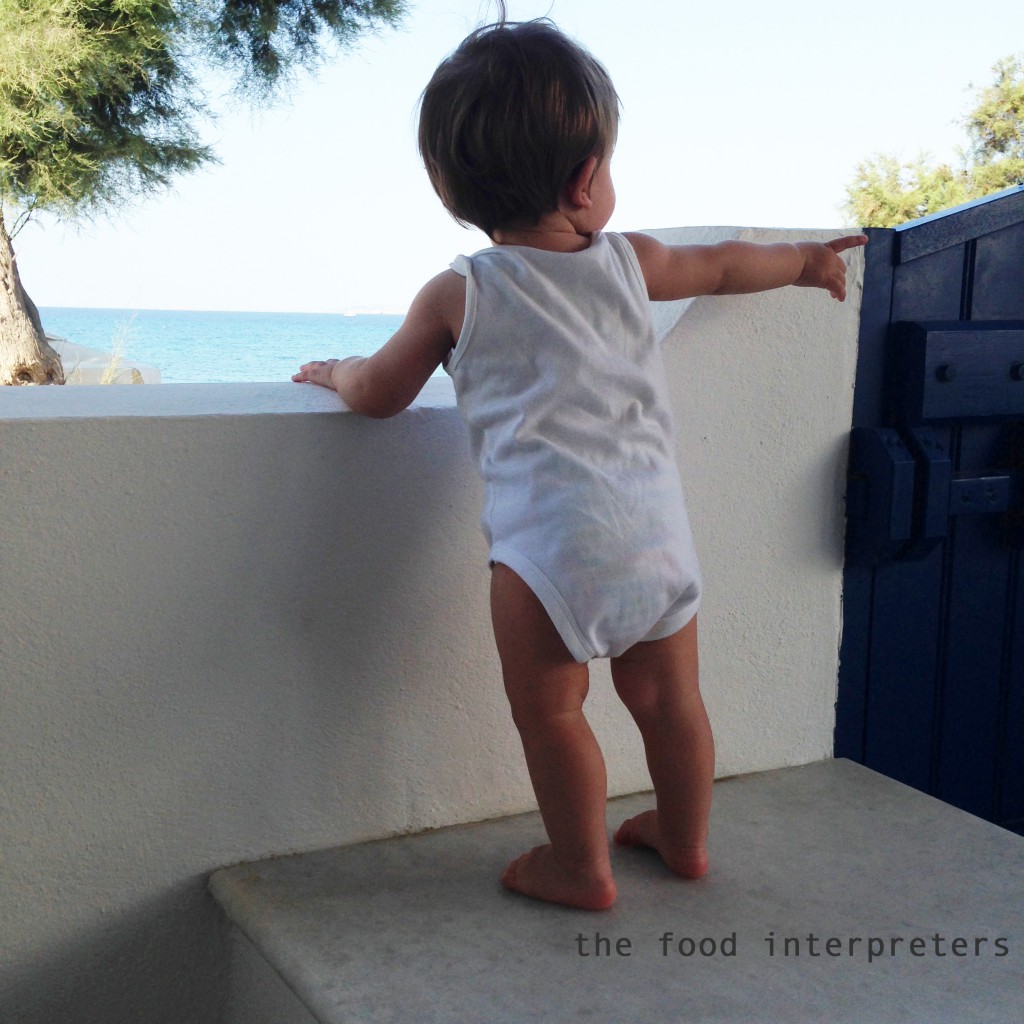 We returned to our house by the sea in Naxos after several years – this time with an extra member. We had to come up with a new eating-and-cooking routine, given also the fact that we entertained friends almost daily (or nightly). It had to be easy, fast and secure: cheese pies, scones, chocolate cakes, tzatziki, salads and of course lots of local cheese, figs and watermelons.